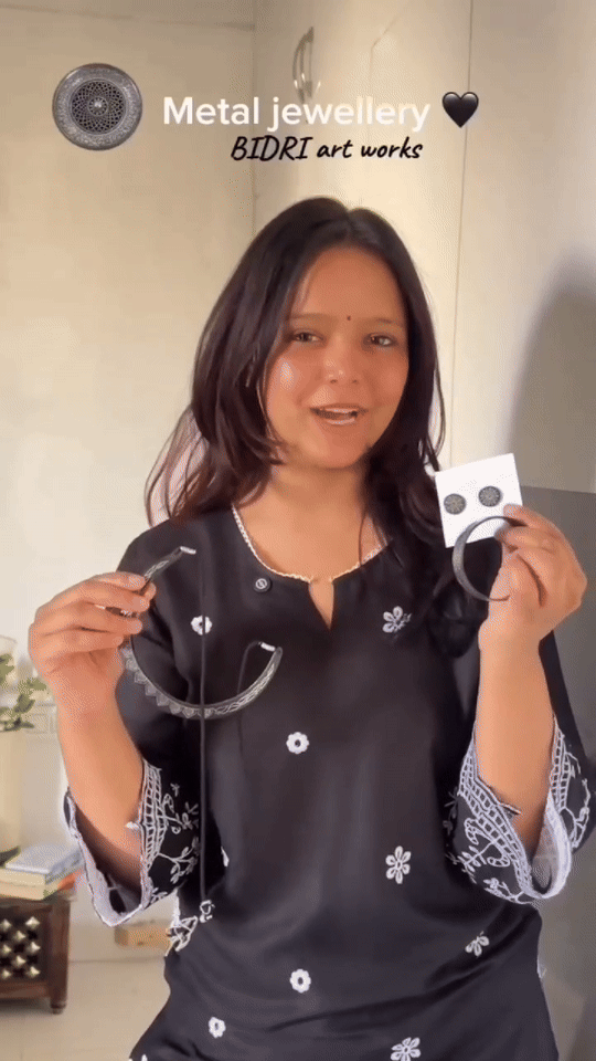 "Own a piece of traditional Bidri art, known for its intricate design and superior craftsmanship. ✨🎨 Each piece is a masterpiece, blending heritage with elegance. 🏺🖤"